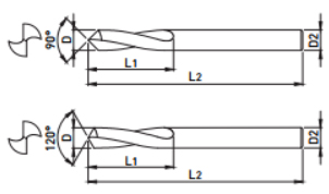 | EDP. No. | D | L1 | L2 | D2 | Point Angle |