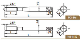 • 막힌 구멍 가공용으로써 보통 주철, 강인 주철, 황동 주물, 열가소성수지 등의 피삭재를 대량 가공할 경우에 적합