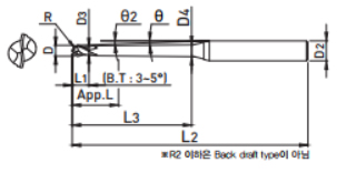• 다양한 제원의 넥부 구성으로 깊은 홈, 경사면 가공에 적합
