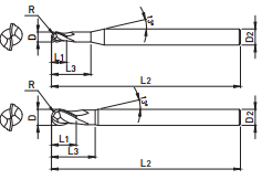 • 2 FLUTES NECK TYPE BALL NOSE ENDMILL