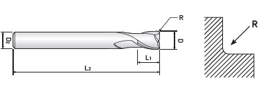 • 2 FLUTE, LONG LENGTH, CORNER RADIUS