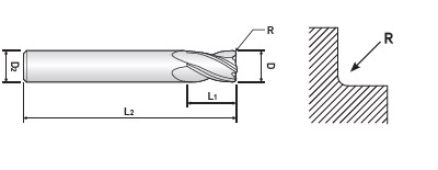 • 4 FLUTE, LONG LENGTH, CORNER RADIUS
