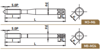| EDP. No. | 호칭치수 | 등급 | L | I | d | K | KI | 날수 | 식부길이 |