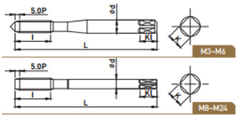 • 관통 구멍 가공용으로써 탄소강, 합금강 및 비철금속 가공에 적합