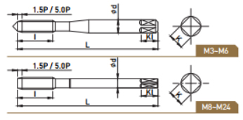 • 막힌 구멍 및 관통구멍 가공용으로써 탄소강, 합금강 및 비철금속 가공에 적합