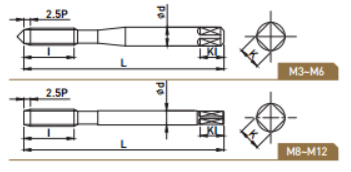 • 막힌 구멍 가공용으로써 보통 주철, 강인 주철, 황동 주물, 열가소성수지 등의 피삭재를 대량 가공할 경우에 적합