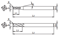 • 4 FLUTE, LONG LENGTH, CORNER RADIUS