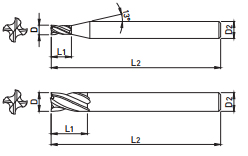 • HRc55 이하 프리하든강, 합금강, 탄소강 계열의 금형 및 부품 가공에 적합함