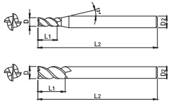 • HRc55 이하 프리하든강, 합금강, 탄소강 계열의 금형 및 부품 가공에 적합함