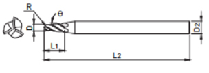 • 3 FLUTE, TAPER BALL ENDMILL